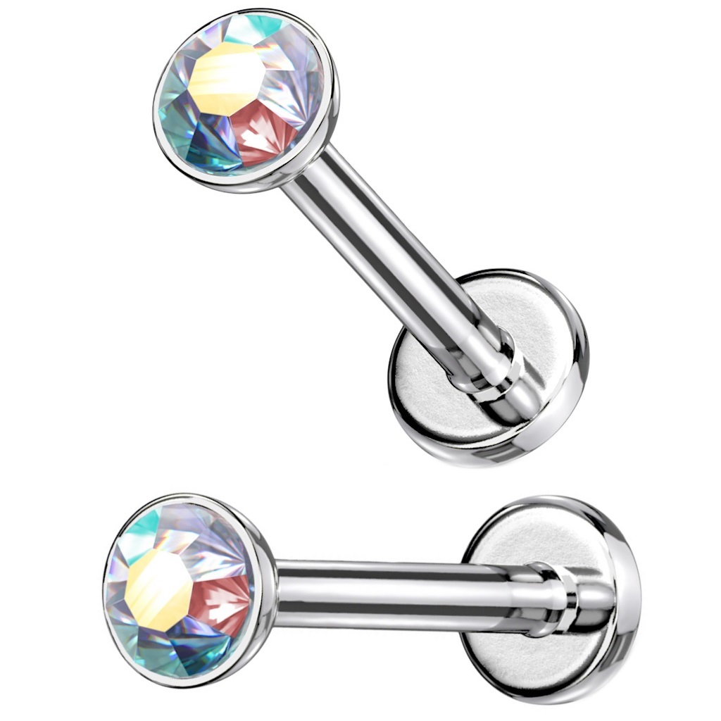 2PC AB Micro Crystal Push Top Labret Studs 20G-16G