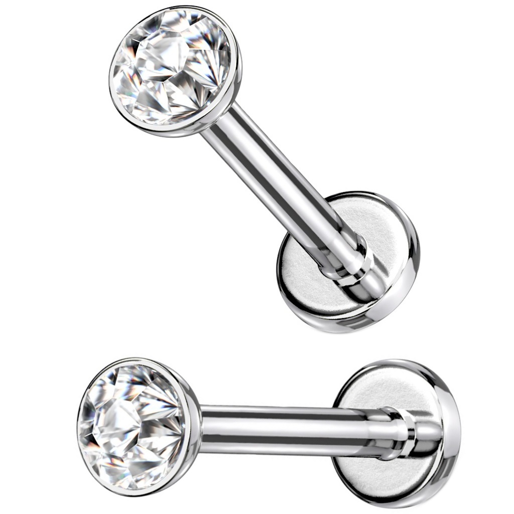2PC Clear Micro Crystal Push Top Labret Studs 20G-16G